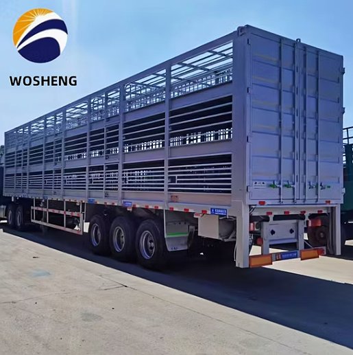 WOSHENG Fence semi trailer generally less expensive compared to other specialized trailers, making thema cost-effective option for businesses that require flexibility in cargo transportation. lt is mainly used fortransporting livestock, poultry and other special transportation vehicles of the barn type.