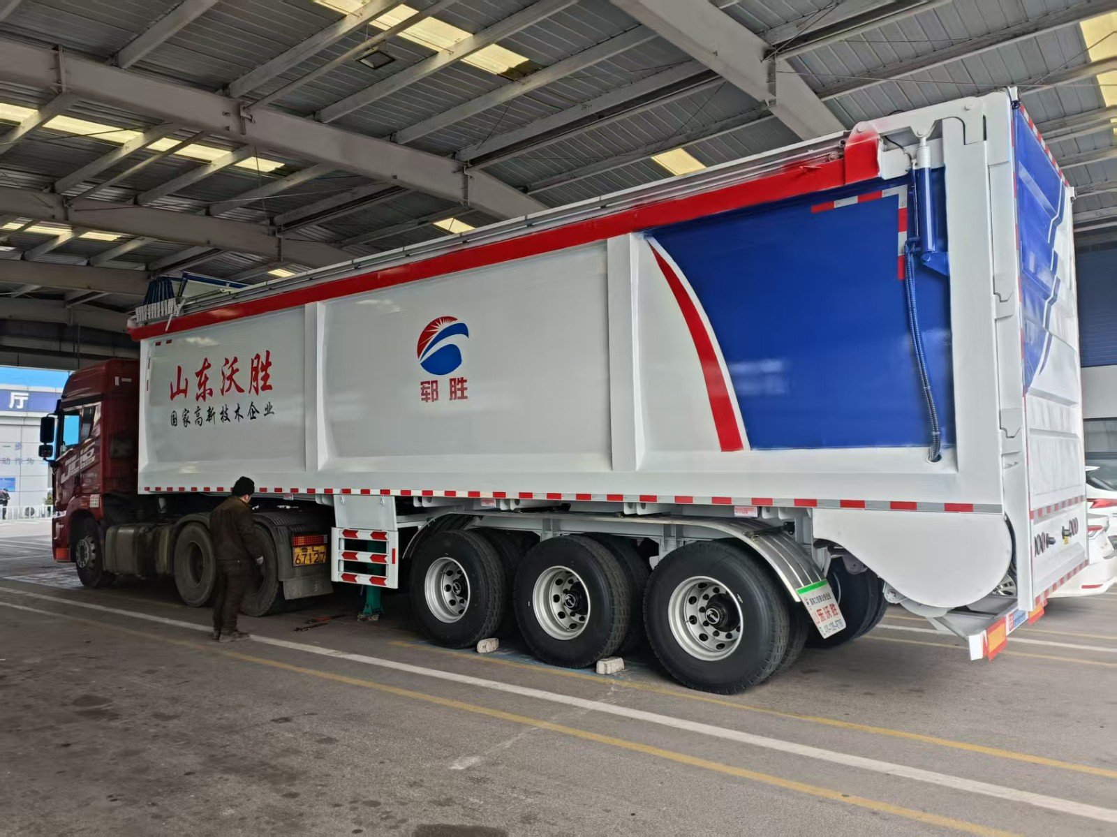 It can be used for transportation of grain, salt, sand, asphalt, coal, etc. There is no need to lift the rear truck and there is no risk of rollover.