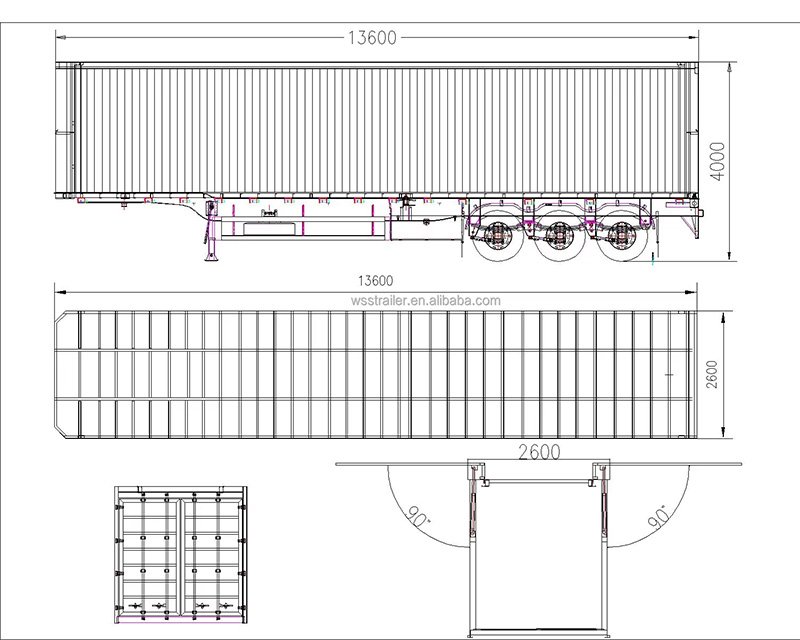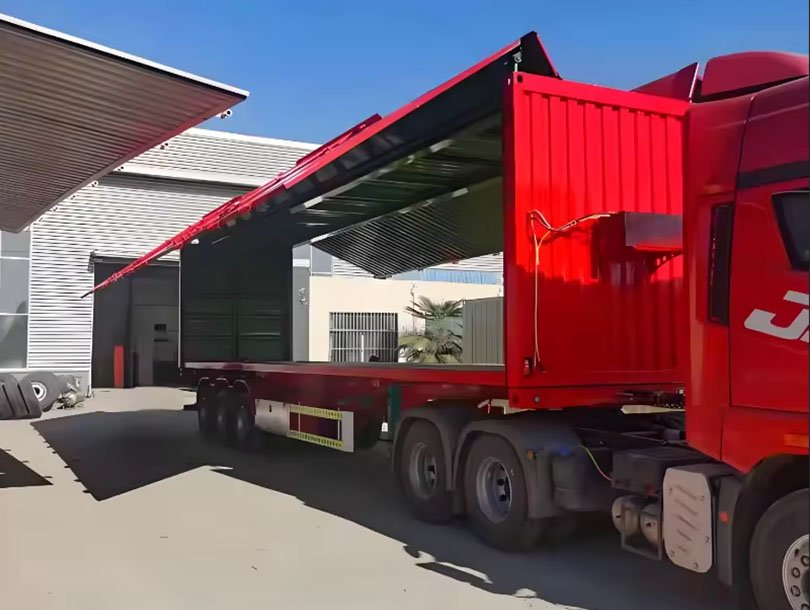Wosheng wingspan van semi trailer is suitable for transporting fruits and vegetables, electricity, building materials and other bulk cargo.The wingspan van trailer is a double-winged hydraulic open-lift carriage on the left and right sides, with movable railings optional at the lower end of the body.