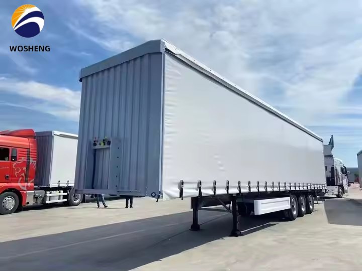In addition, the customer also ordered a side curtain semi-trailer,Wosheng The chassis, pillars, beams, and curtains form the main body of the side curtains. The curtains on both sides can be quickly opened, or single side curtains can be selected, making the loading and unloading of goods very convenient. Side curtain trailers play a huge advantage in six transportation fields, including multi-modal transportation, household appliances, beverages, paper rolls, automotive parts, panels, and packaged goods.