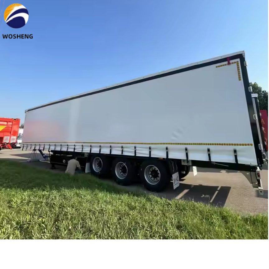 Wosheng The chassis, pillars, beams, and curtains form the main body of the side curtains. The curtains on both sides can be quickly opened, or single side curtains can be selected, making the loading and unloading of goodsvery convenient. Side curtain trailers play a huge advantage in six transportation fields, including multi-modal transportation, household appliances, beverages, paper rolls, automotive parts, panels, and packaged goods.